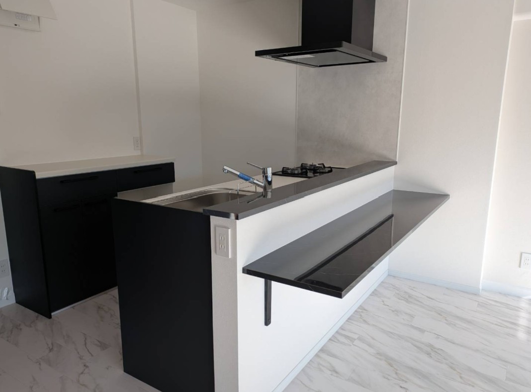 対面キッチンに変更したことで、料理中でもLDK全体が見渡せ、空間とのつながりを感じられる、開放感のあるキッチンへと生まれ変わっています。