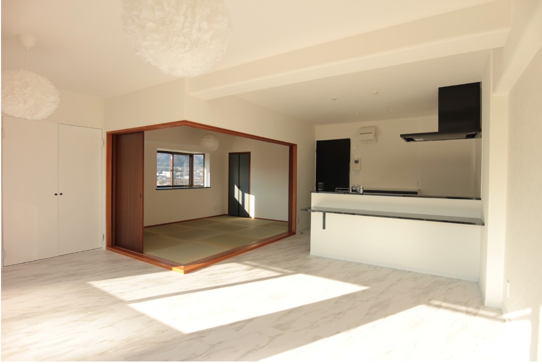 【施工事例】対面キッチンと和モダン空間を叶えたマンションリフォーム<広島県府中市>